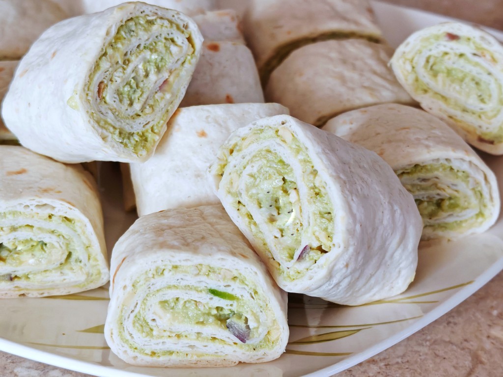 Rolki z pysznym wnętrzem pełnym kurczaka, awokado i sera cheddar.