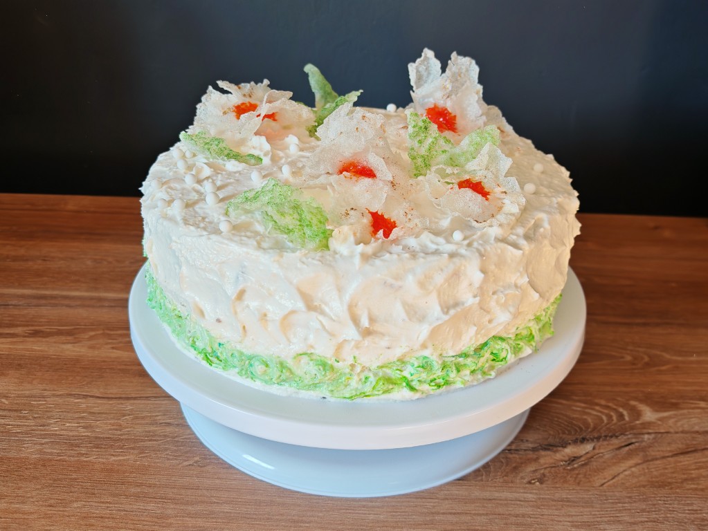 Chałwowa głębia, wiśniowa żelka i bezglutenowa lekkość sprawiła, że tort jest dopracowany w smaku, a subtelna dekoracja zachwyca wyglądem.